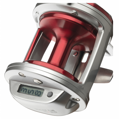 Moulinet multiplicateur classique avec compteur de profondeur numérique et engrenage puissant.