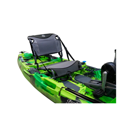 Sa plateforme renforcée permet de lancer les lignes en toute stabilité, tandis que la longueur étendue de la coque favorise une trajectoire rectiligne. Le kayak comprend aussi un rangement horizontal pour les cannes avec protections de pointes et sangles, une trappe avant à charnière, ainsi qu’une trappe arrière à quart de tour derrière le siège.