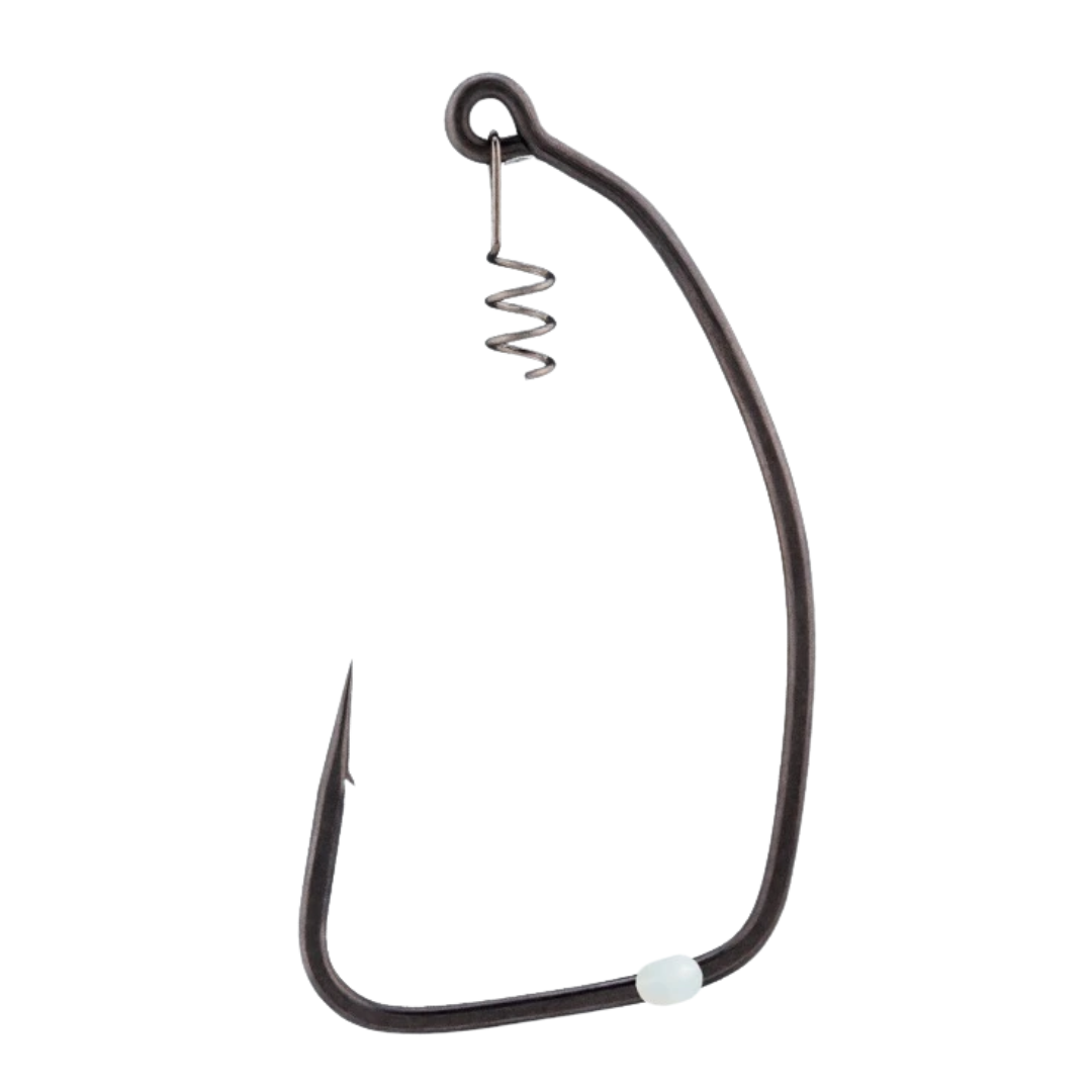 Este anzuelo cuenta con un resorte de bloqueo que mantiene los señuelos firmemente en su lugar, facilitando su colocación o retirada. Un tope de silicona ajustable mantiene la posición del señuelo durante el lanzamiento y permite que se deslice cuando un pez muerde.