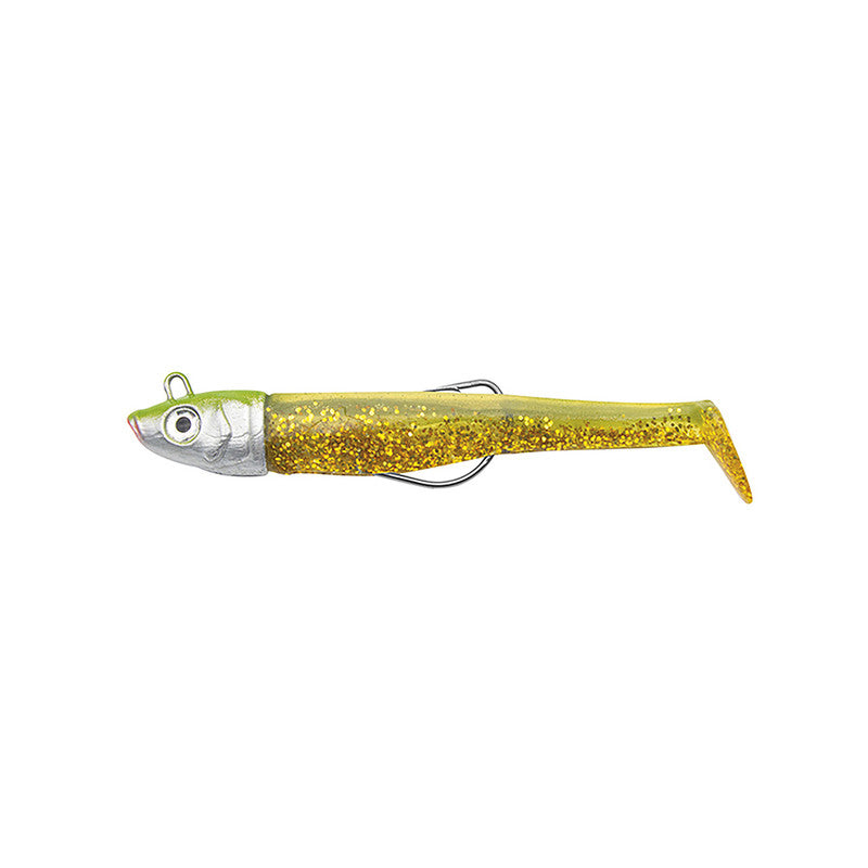 This product is available as separate components or fully assembled by specialists. The assembly process includes gluing the lead head to the vinyl body and attaching a Texas hook.