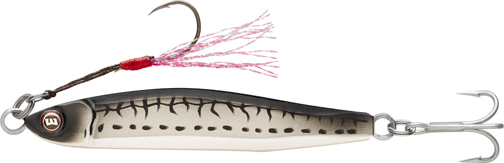 Trick Metal is a highly versatile jigging lure that features a wide tail kicking action. The asymmetric body design gives it a tricky action on the fall which triggers those hungry predators to bite! Trick Metal is rear weighted for long casts and a fast descent. Rigged with VMC® dressed assist hook & rear treble hook.